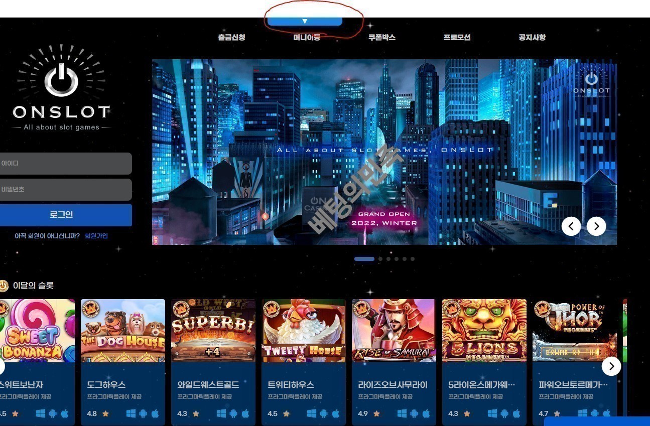 상단에 감춰져있는 파란색 화살표 버튼을 누르시면 원하는 게임사로 이동도 가능하시며 입/출금 내역 및 정보확인 가능하시니 참고 부탁드리며