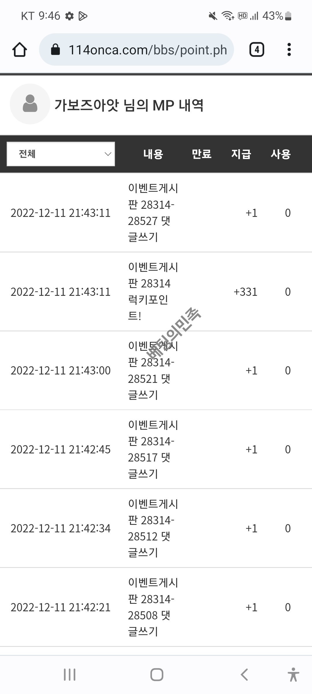 합니다!! 331포인트 입니다 ㅎㅎ