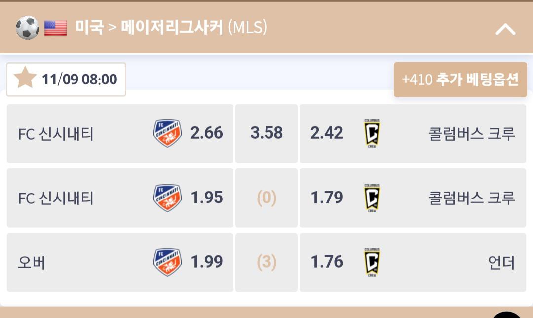 배당이 더 좋았던 신시내티가 이겨버리네요