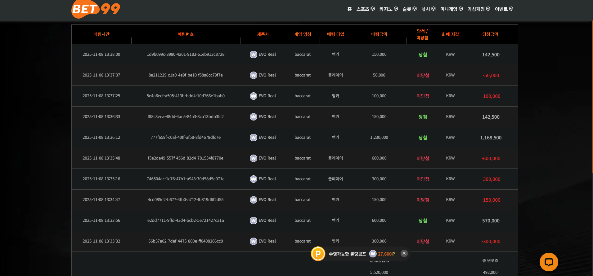99에 200충 바카라 역시 어렵네여 먹죽먹죽 최종 250출합니다