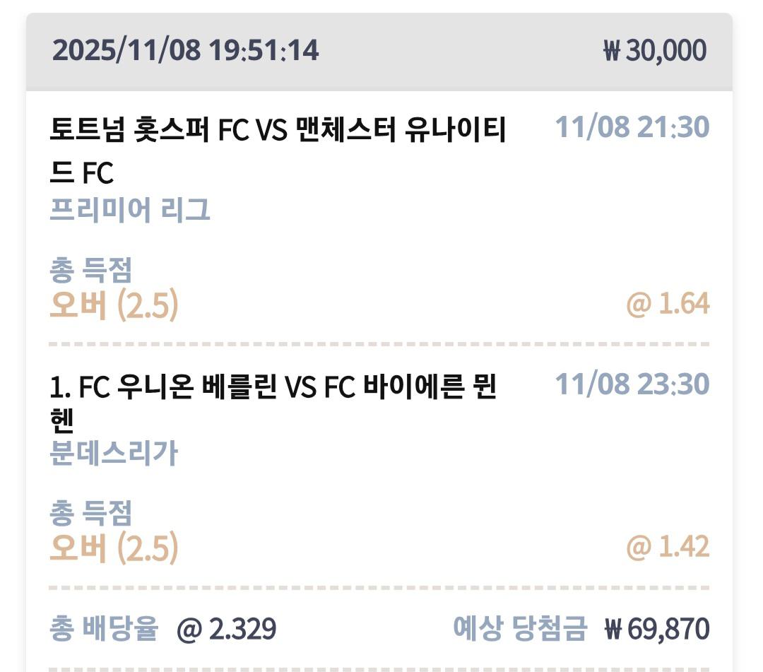 토트넘 뮌헨 2경기 모두 2.5옵!