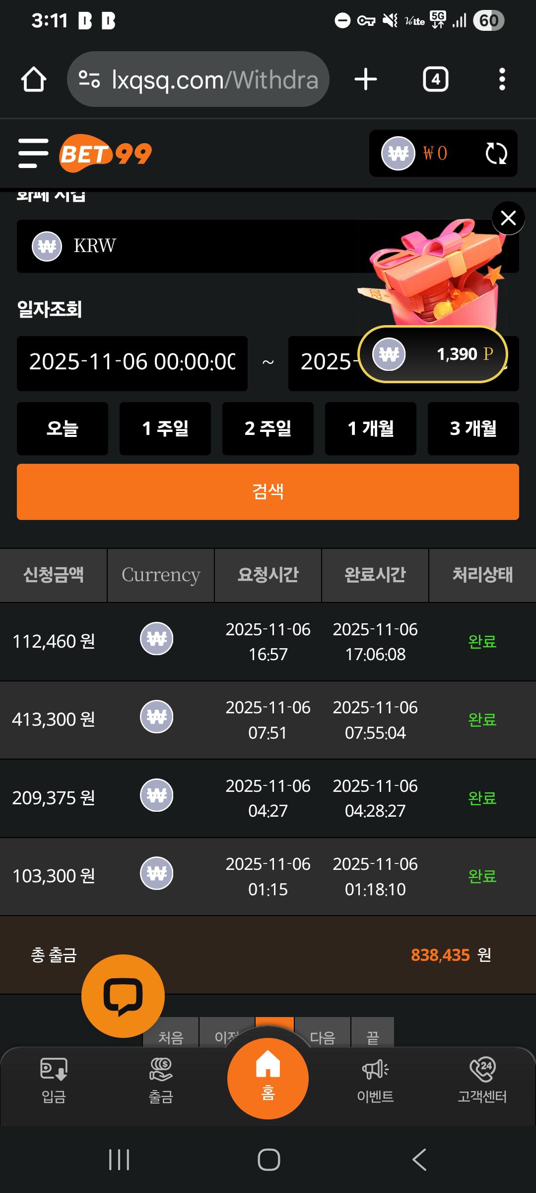 어제자 출금 잘하다가 오링이요
