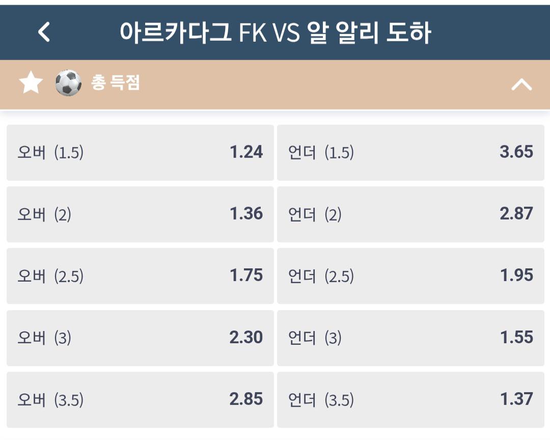 어느나라 팀인지도 모를 두팀의 대결..2.5옵 배당이
