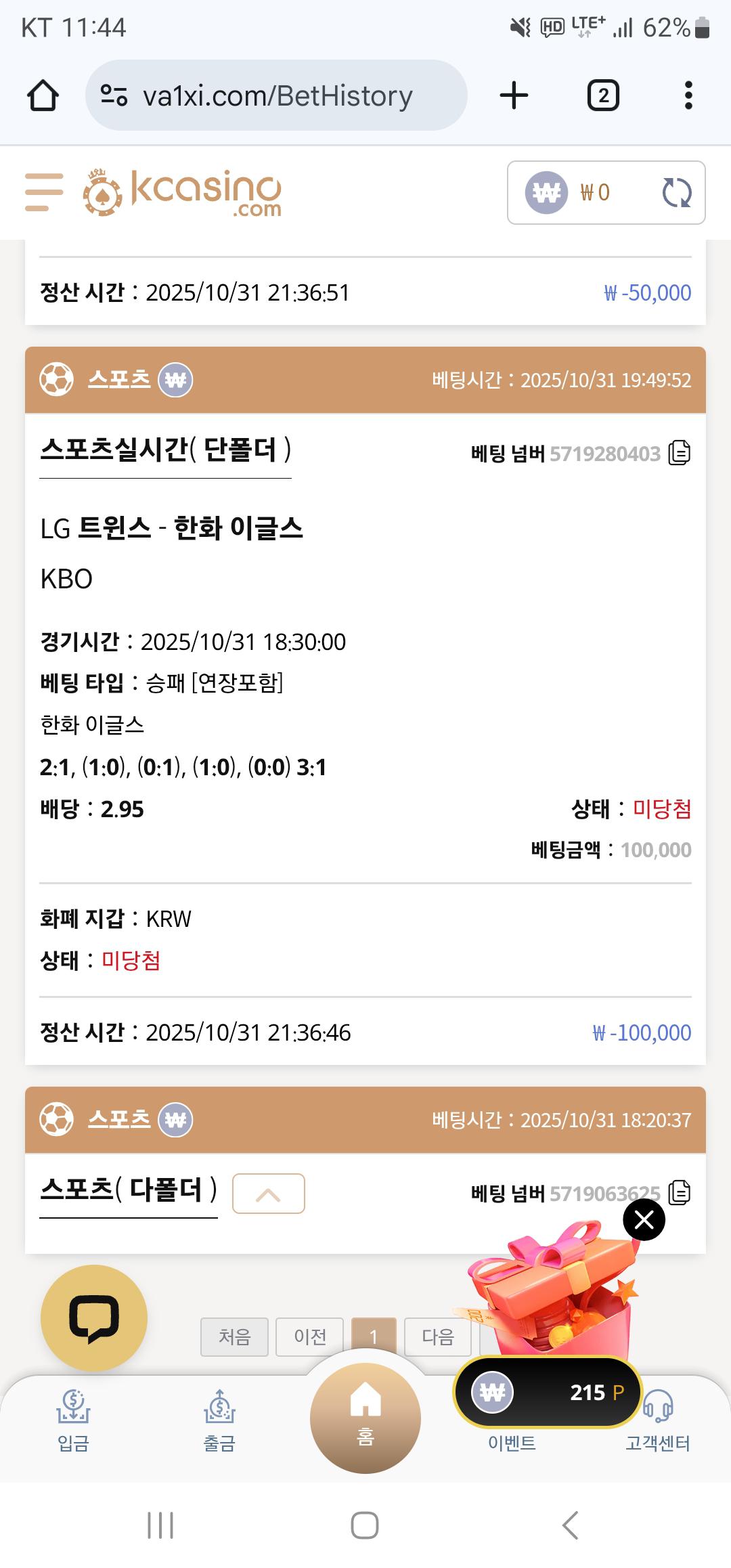 어제 스포츠 소액 뎅뎅뎅 입니다