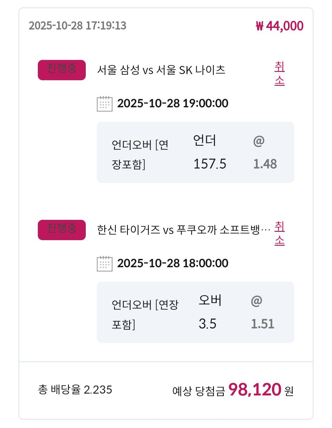 2차는 일본시리즈 3.5옵..그리고 국농 157.5 언!