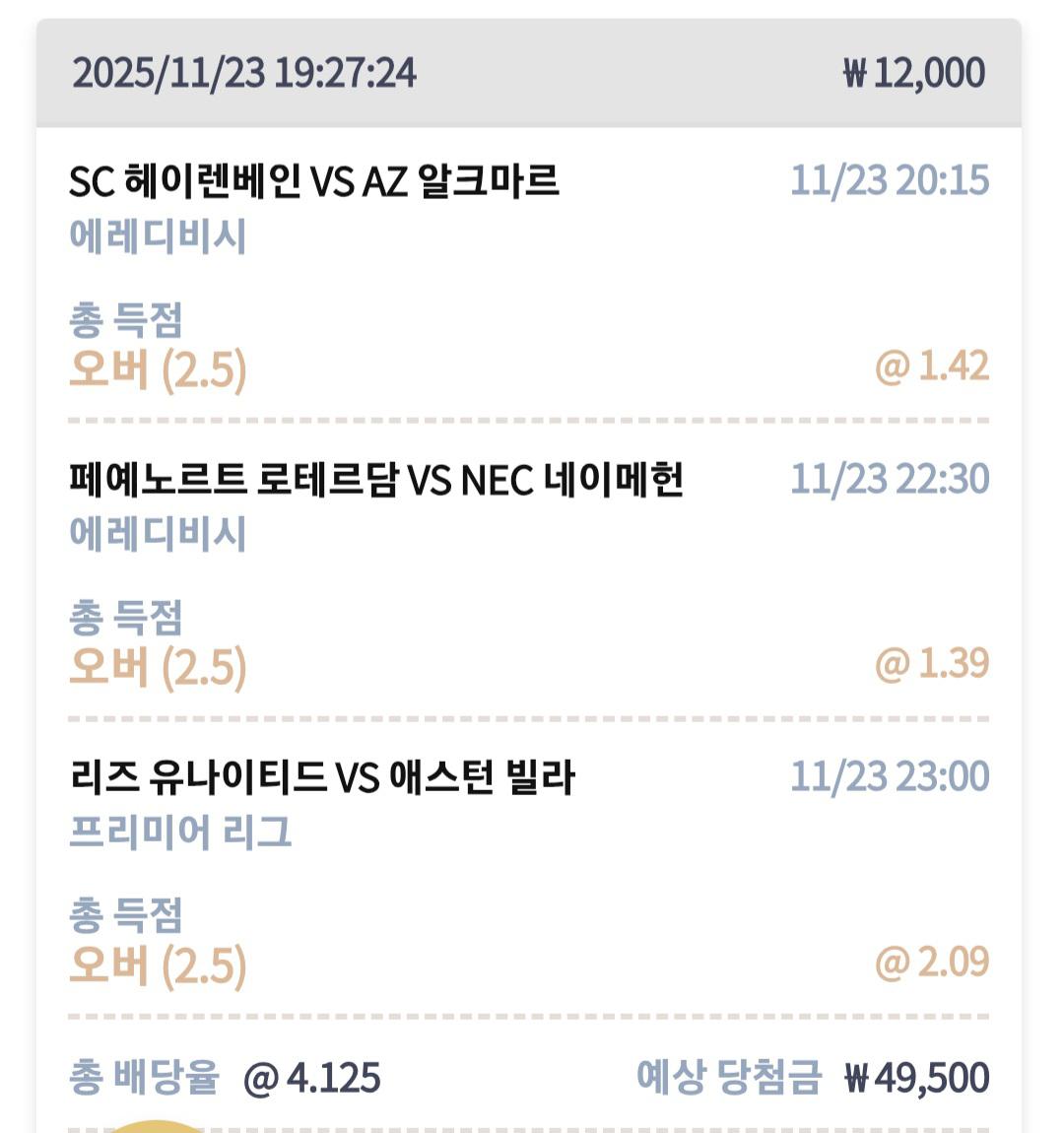 첫 관문이었던 네덜리그 알크마르 경기는 적중!
